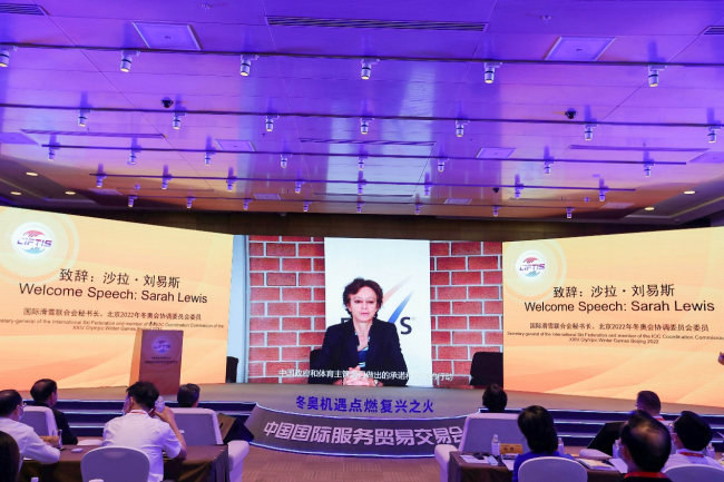 国际滑雪联合会秘书长、北京2022年冬奥会协调委员会委员萨拉·刘易斯在视频中赞扬了中国政府面对疫情时采取果断有效的预防措施和控制措施,为2022年冬奥会的如期举办和带动3亿多人参与冰雪运动的承诺奠定了基础。同时,她还代表国际滑雪委员会表达了对北京2022年冬奥组委会的信任与支持。