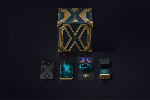 OPPO Find X2英雄联盟S10限定版的所有配件,也都完美结合了游戏和赛事主题。其中,定制的保护壳中间“X”形状透明处理可呈现机身背部的深邃星云。搭载着65W超级闪充的电源适配器印有德玛西亚的专属图标。定制耳机的两侧分别印有赛事logo和S10官方主题“Take Over”的金标。