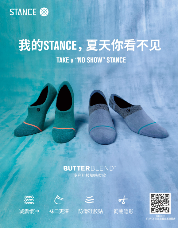 夏天不应是沉闷的,在穿搭上不妨删繁就简,更加注重实穿度、舒适度与明快度的完美搭配,在袜子的选择上更应如此。袜子的材质与触感,运动时刻的持久续航,STANCE船袜、运动袜当仁不让地成为心仪之选。无论是隐形不掉跟的“NO SHOW”潮流生活隐形袜系列,还是注重透气耐穿功能的“COOL PERFORMANCE”夏日运动系列。“一袜入魂”,穿上即可拥抱夏天。